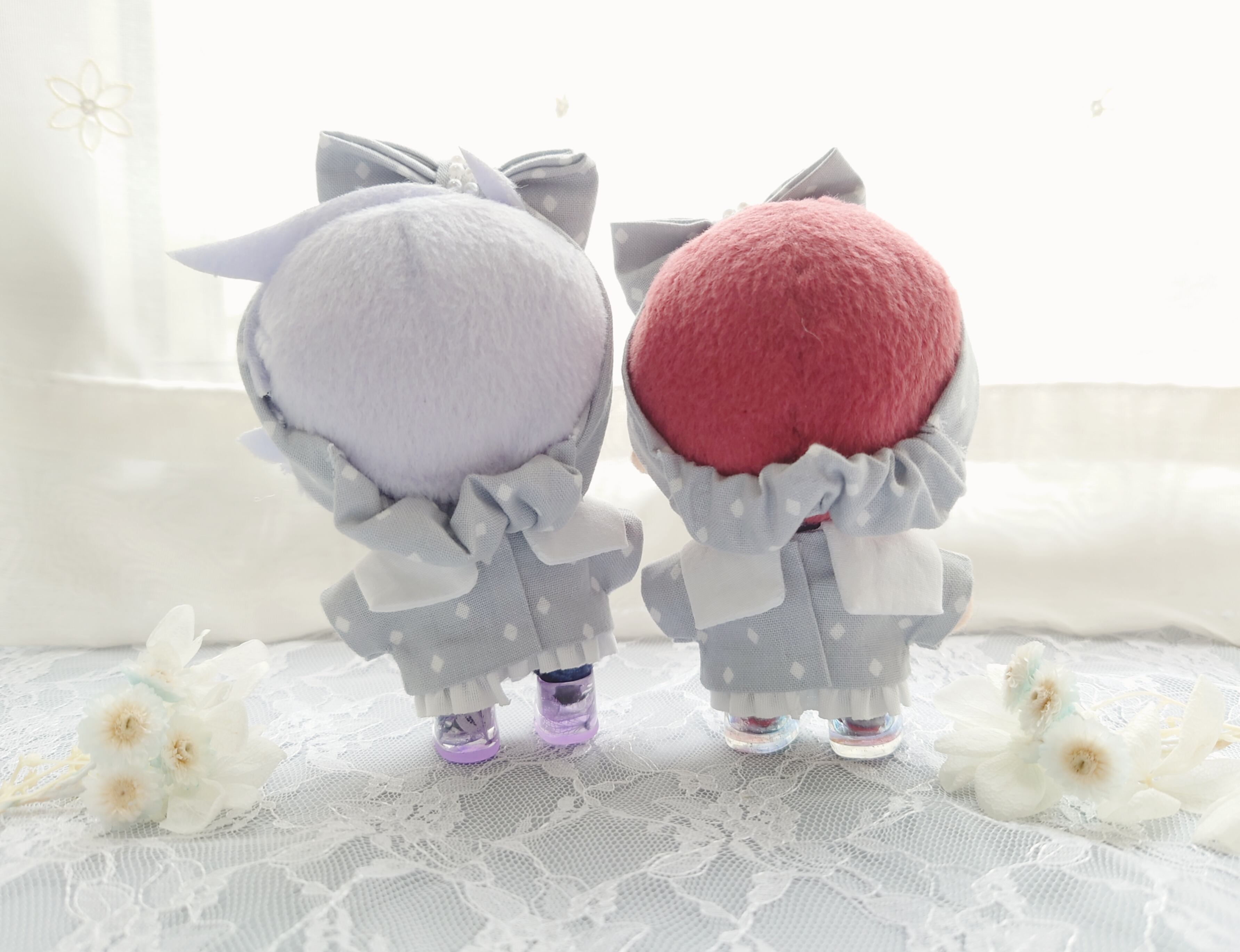 10cmマスコット用に製作しましたが、12cmぬいぐるみ(骨なし)でも着用出来るのを確認しています。